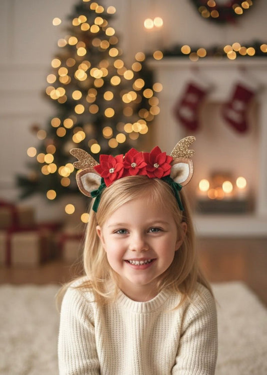 El Yapımı Poinsettia Çiçekli Geyik Boynuzu Taç